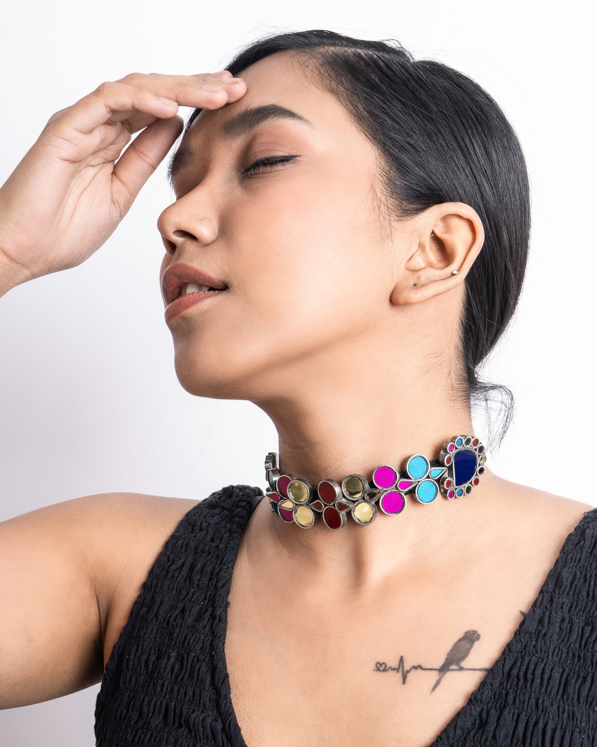 This captivating piece is adorned with multi-colored stones, adding a vibrant touch to its authentic design.