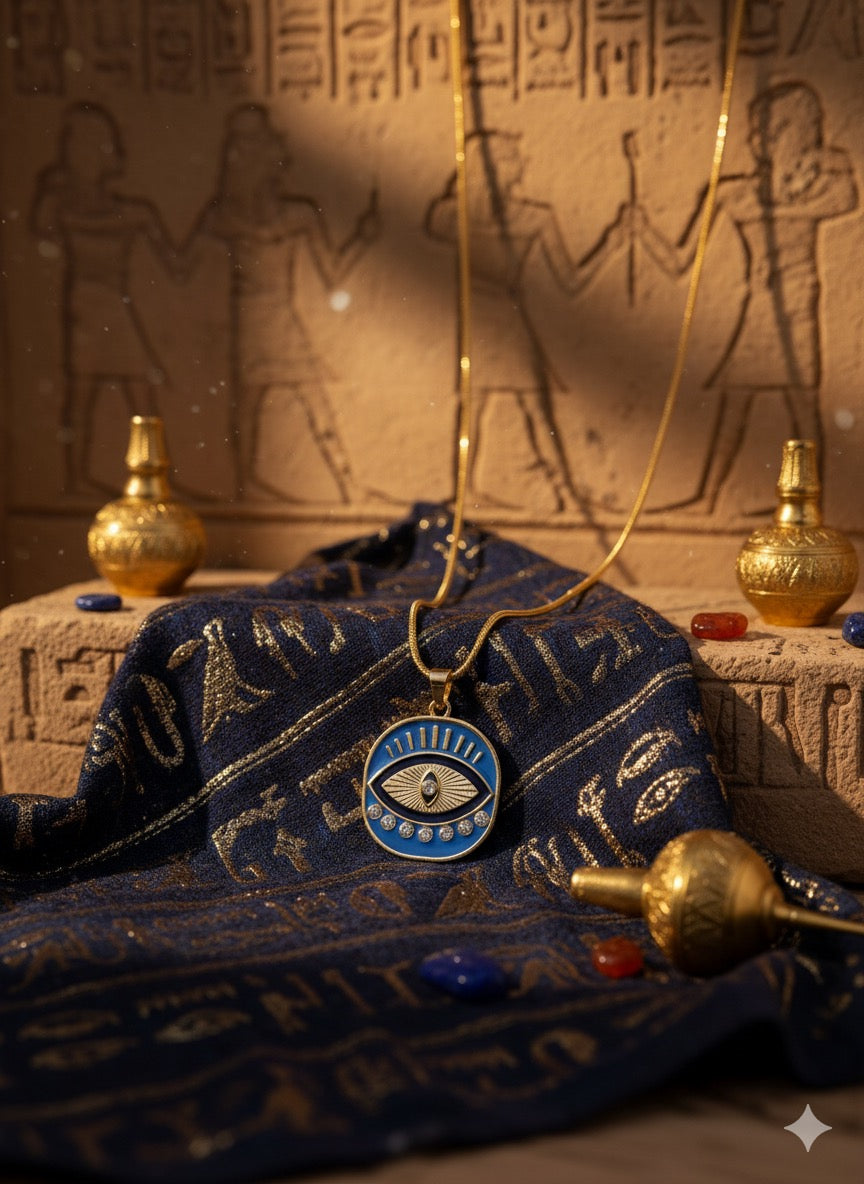 The Eclipse Gaze Pendant from our Evil Eye Collection is a unique, rounded amulet that takes its inspiration from the moment of cosmic alignment. Set in rich shades of deep twilight blue and espresso brown enamel, the eye's powerful iris features a single, brilliant crystal pupil. The delicate arc of shimmering accents below acts as a watchful, sparkling lash line. The pendant shields you by absorbing and neutralising negative energy, offering a refined, mystical blend of shadow and light.