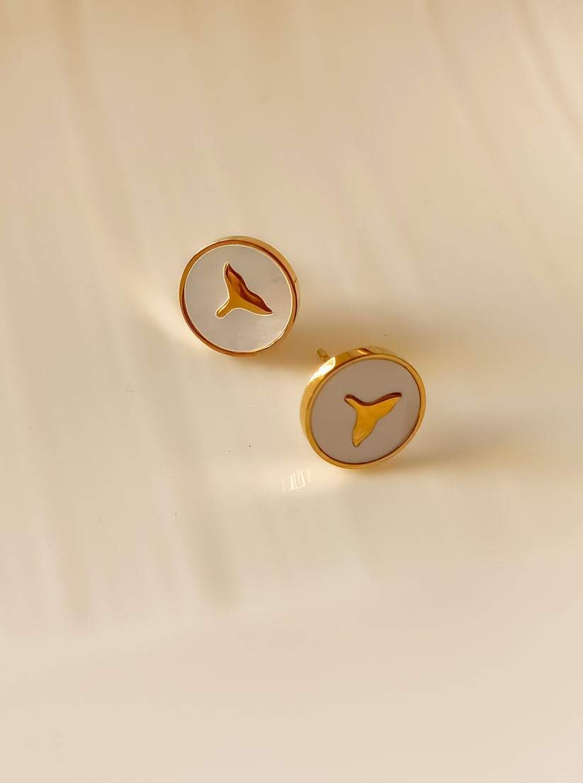 Introducing our Stainless Steel earrings, that remain tarnish-free for years to come. With a pristine white stud, accented by a golden rim and an intricate design in centre, they exude sophistication.