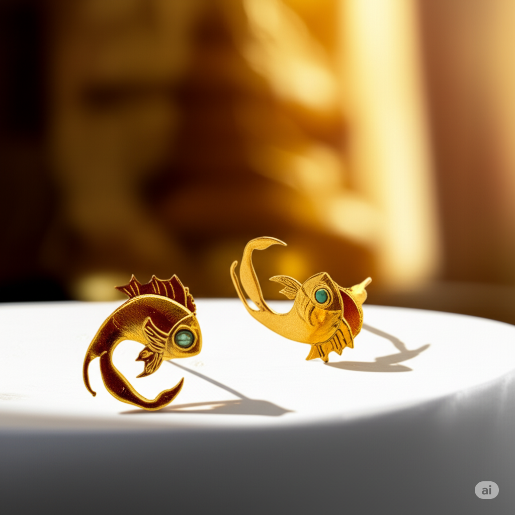 A standout piece from our Sacred Symbols collection. Designed as twin fish with flowing fins and aqua-stone eyes, these earrings symbolize intuition, emotional depth, and duality. The turquoise-hued centre brings a serene pop of colour, echoing the calm of sacred waters and spiritual watchfulness.