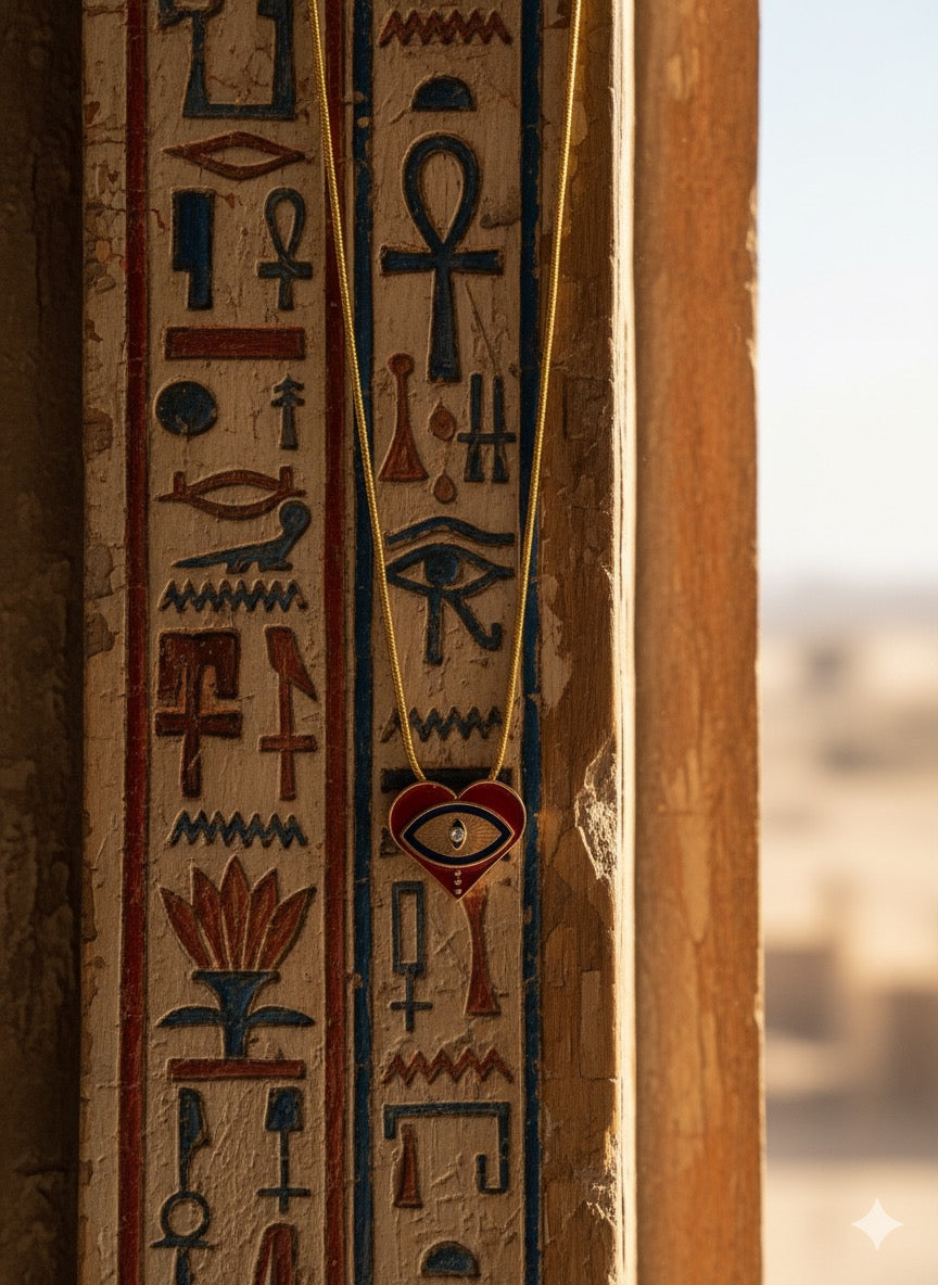 The Guarded Heart Pendant from our Evil Eye Collection is a unique amulet that combines the traditional protective eye with the universally recognised shape of the heart. Set in a deep, vibrant ruby red enamel, the central eye is a mystical blend of sapphire and gold, watching over your deepest feelings. The Guarded Heart is designed to repel emotional negativity and ill intent, allowing you to love fiercely without fear.