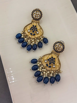 Royal Blue Kundan Chandbali Earrings with Pearl Drops